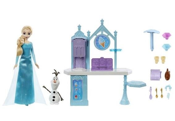 Kinderen hebben dolle pret met deze toetjesspeelset en 2 favoriete vriendjes van fans, Elsa en Olaf, geïnspireerd op de Disney Frozen films! In haar beroemde outfit van ijskoningin staat Elsa klaar om haar ijskoude lekkernijen te serveren, samen met haar sneeuwmannetje en hulpje Olaf. Kids kunnen met 2 verschillende kleuren klei en meer dan 10 snoezige accessoires toetjes maken die net echt lijken! Pop kan niet los staan. Kleuren en versieringen kunnen variëren.